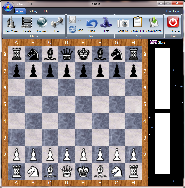 Có thể thay đổi quân cờ và bàn cờ theo ý muốn qua chức năng Options.